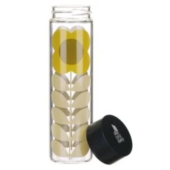 This stylish and eco-friendly water bottle features a gorgeous floral print from Joules; cream, coral and yellow wildflowers are interspersed with flecks of foliage that tumble across the transparent glass vessel.Â