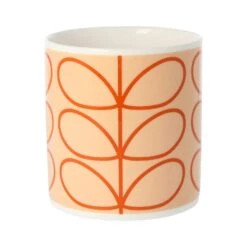 This stylish mug features the ‘Bunch of Stems’ design by Orla Kiely; three stems of leaves fan out creating an arrangement, each stem is topped with a white four petal flower with a yellow centre. The bunch repeats around the edge of the mug set against a grey background making the design stand out. Add a retro vibe to your kitchen with the simple design of this big mug that will fit into any scheme and particularly suits a modern kitchen!