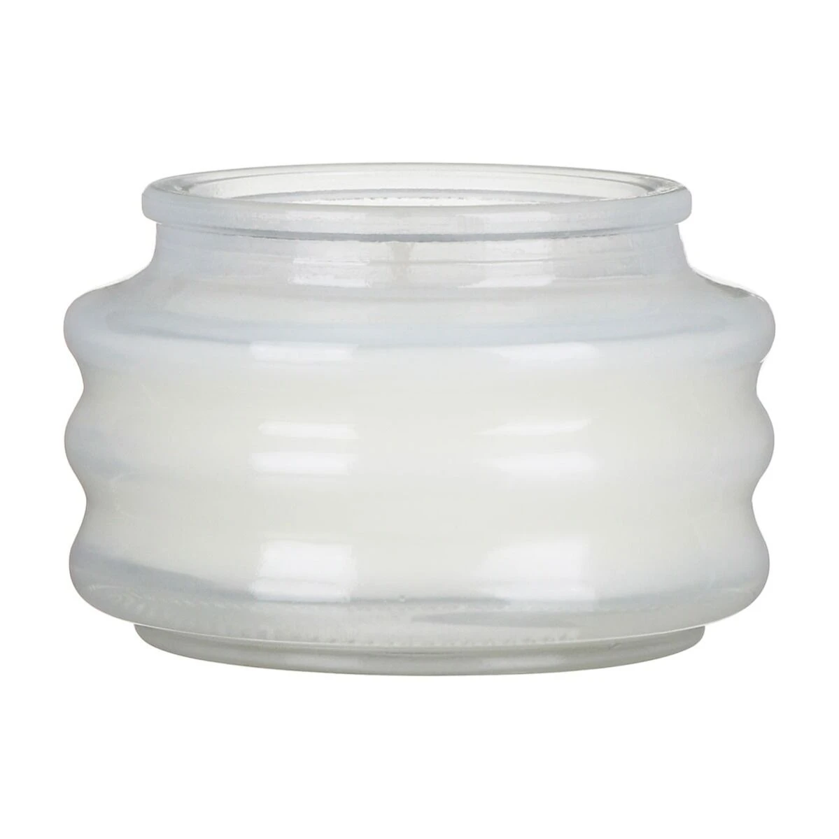 This beautiful candle is made from glass which has been shaped with a ripple effect. The crisp white glass vessel is complete with a matching lid. Once you have finished with your candle the glass pot is perfect for reusing for mini succulents or as a jewellery box.