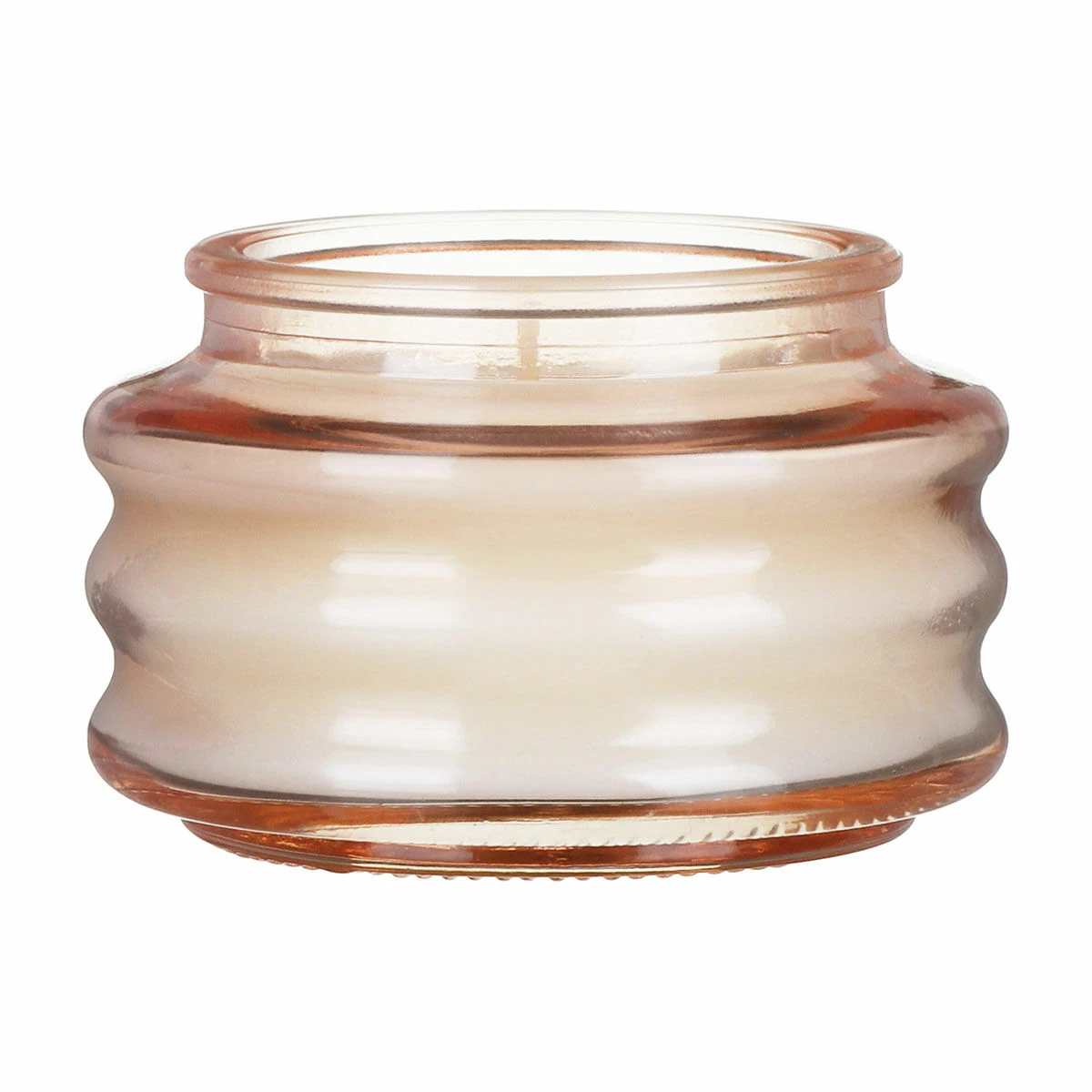 This beautiful candle is made from glass which has been shaped with a ripple effect. The pale pink glass vessel is complete with a matching lid. Once you have finished with your candle the glass pot is perfect for reusing for mini succulents or as a jewellery box.