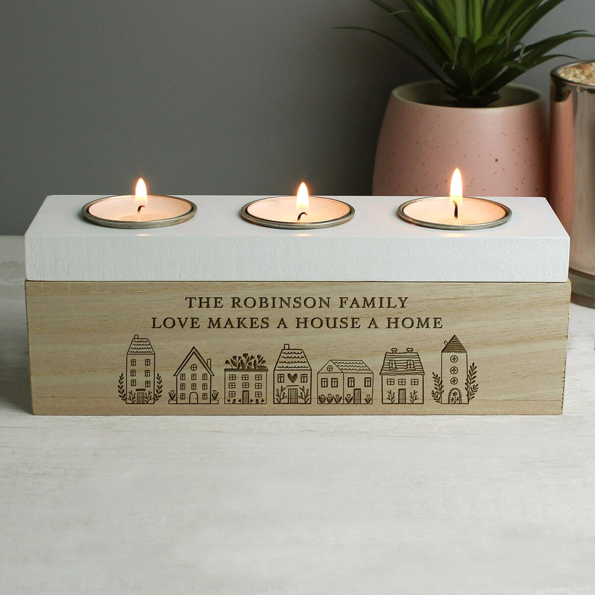 Personalised HOME Triple Tea Light Box