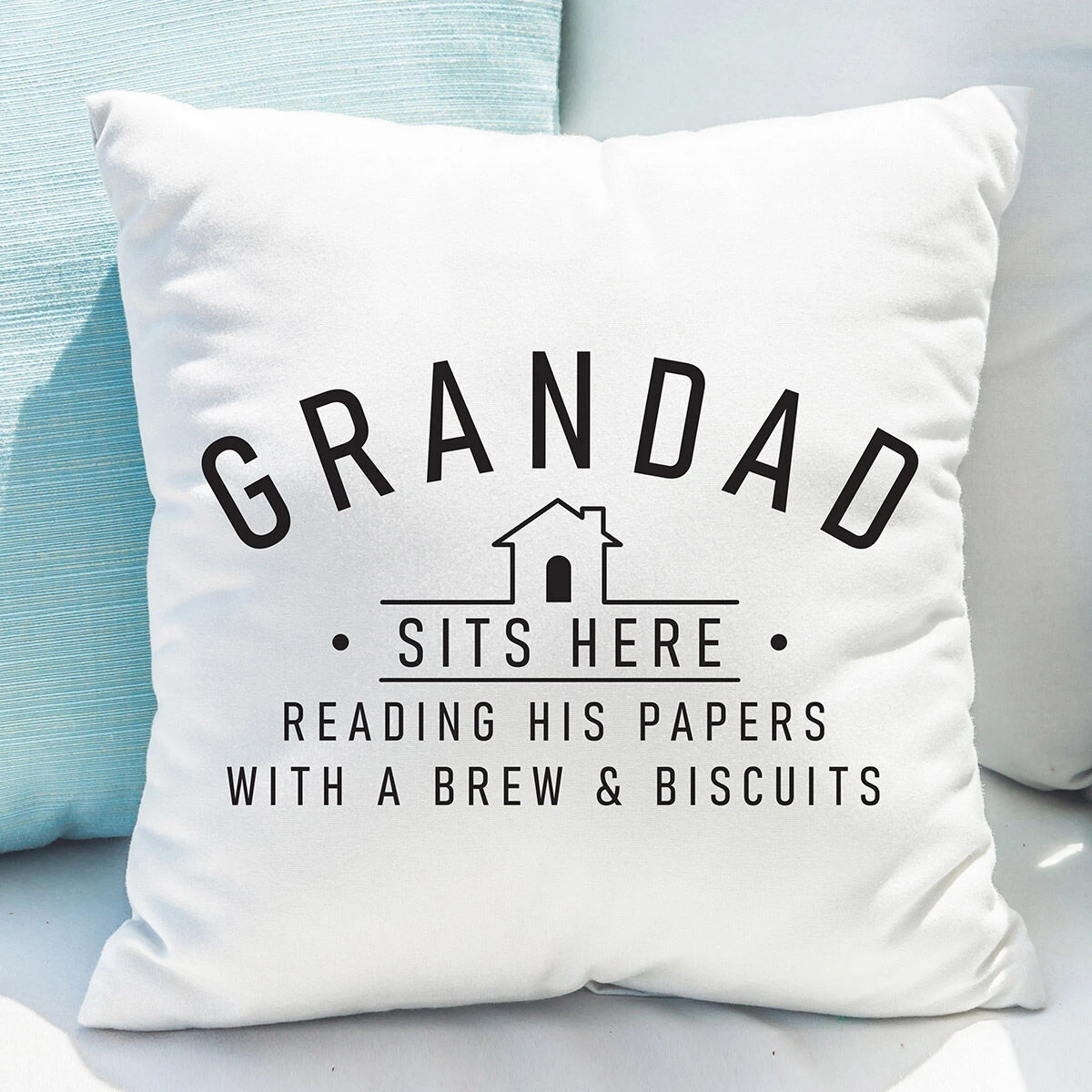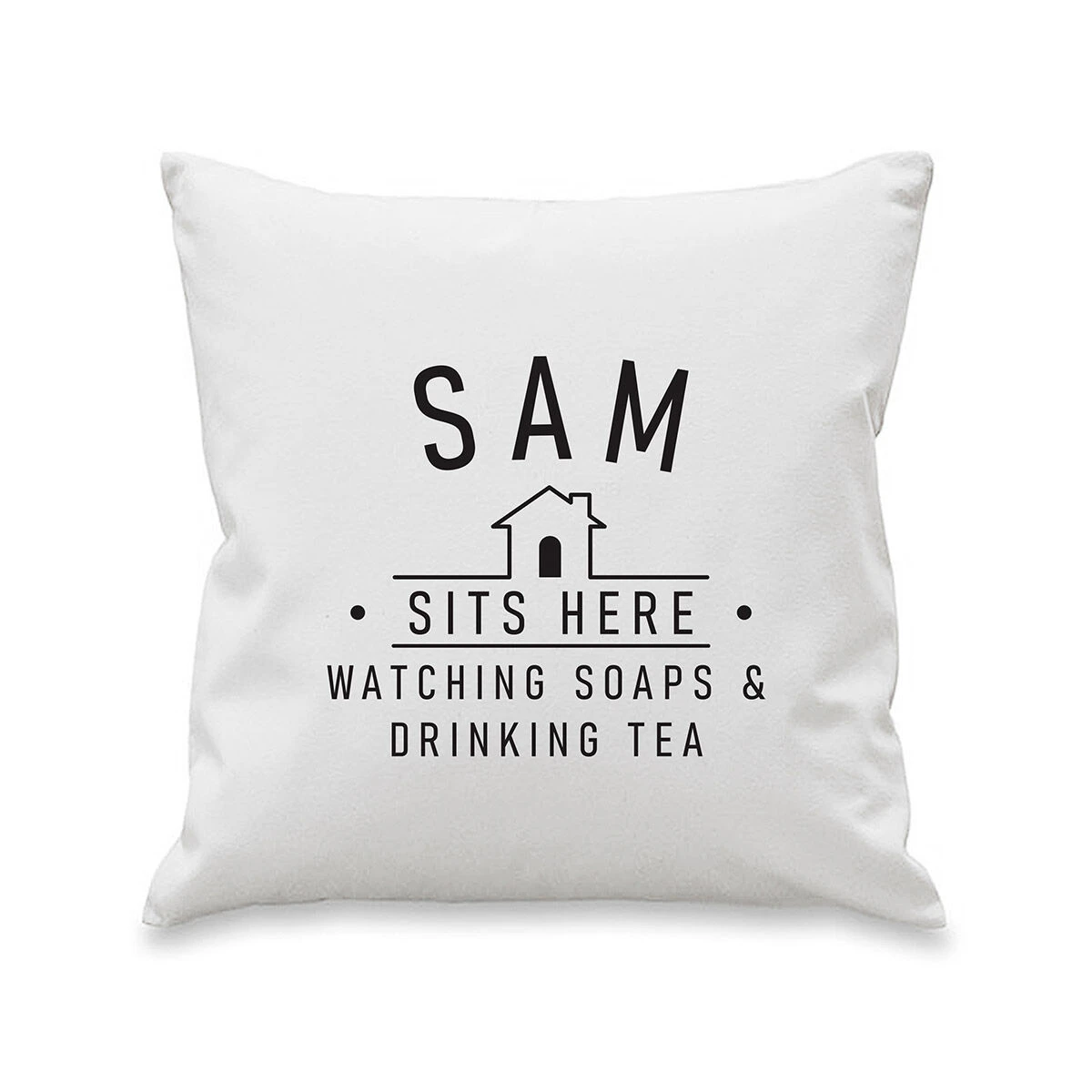 The velvety white cushion is made from 100% cotton, decorated the outline of a house, and the words, ‘sits here’.