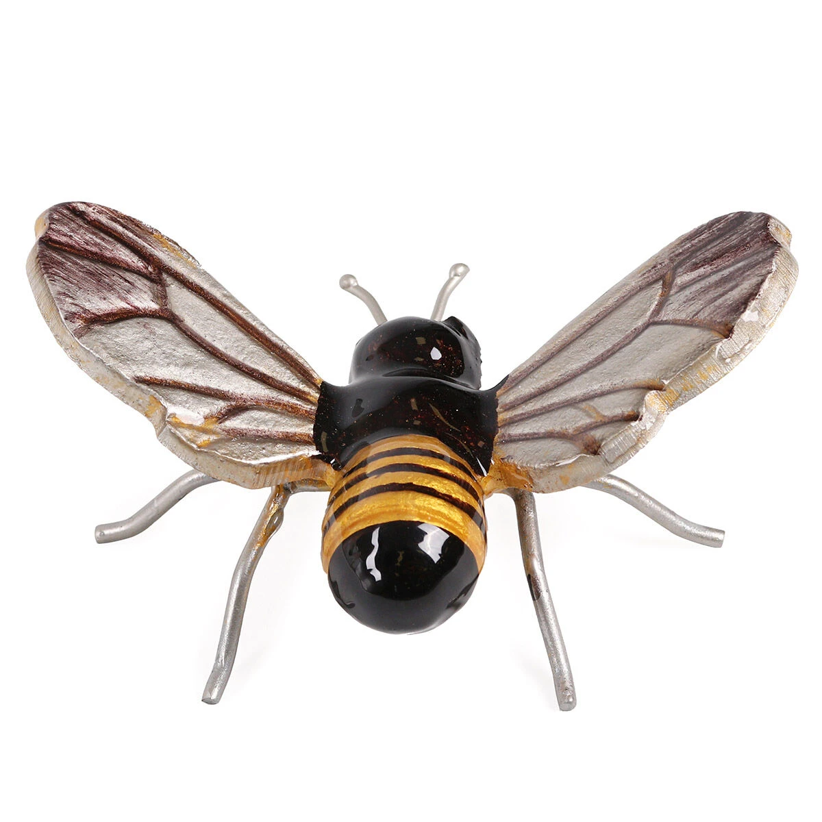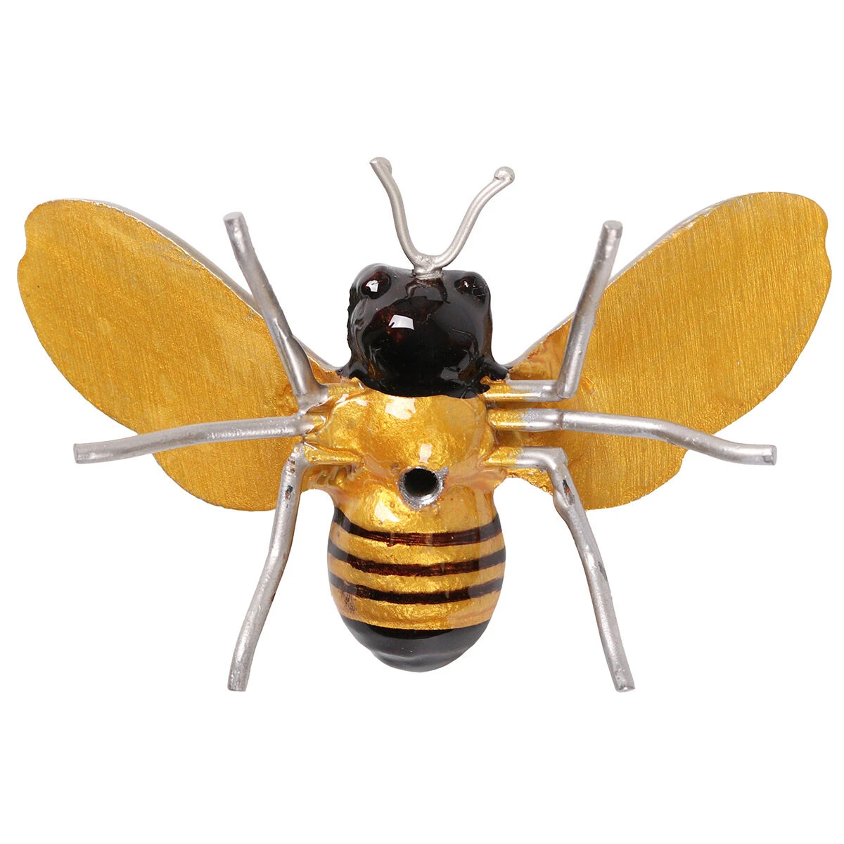 This elegant animal is designed with large, detailed silver wings, a stripey body and two antennas. It has been lacquered with a stunning black and yellow coloured enamel finish which glistens like a jewel when it catches the light. With a hole in the base you can screw it to a wall or shed using our hanging wall attachment (sold separately).