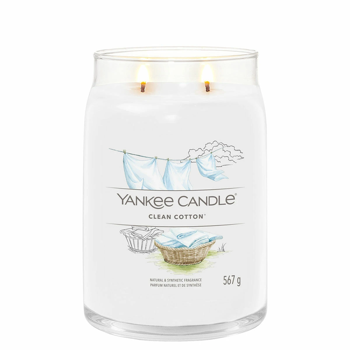 Enjoy the wonderful Clean Cotton fragrance in the wonderful Signature Large Jar Candle, a sleek glass vessel that compliments the fragrance and will look wonderful in your home. The wonderful aroma from Yankee Candle is certain to fill any room with a familiar and comforting feeling of freshness!