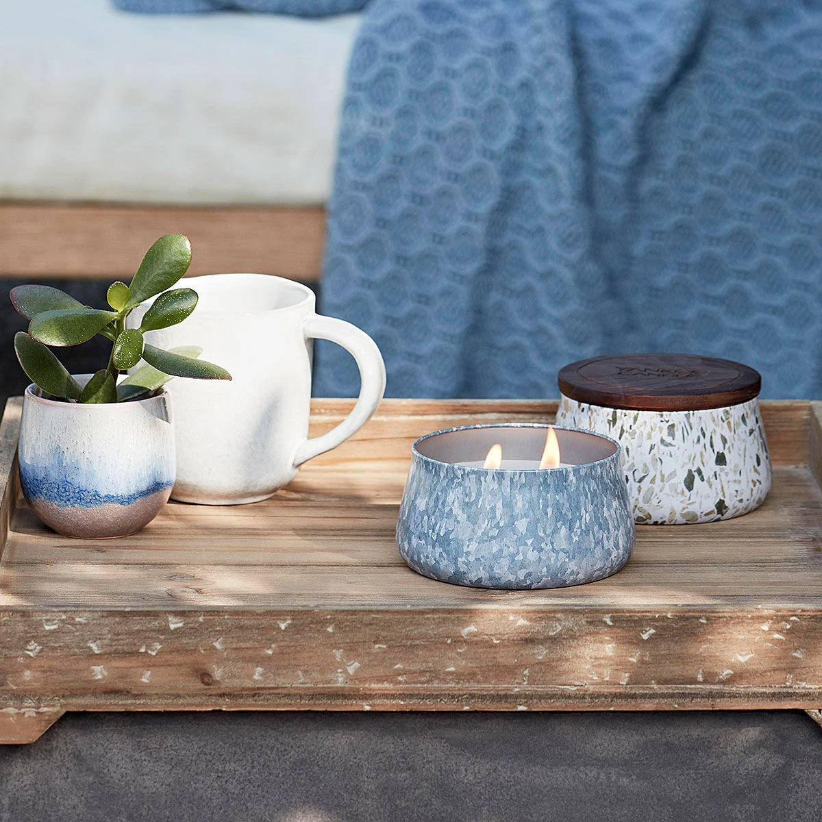 Designed specifically for optimal outdoor performance, the candle features durable dual wicks that will stay alight, as well as a unique wax blend that has a higher melting point to withstand the elements. The citronella wax blend is infused with essential oils that are known to known to repel bugs, so you can enjoy your garden in comfort.